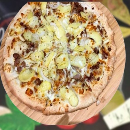 Sauce tomate, mozzarella, viande hachée, bacon, tomates fraîches, oignons, cheddar, sauce barbecue, origan, oignon sec. €21.00