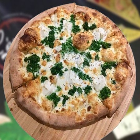 Crème fraîche, mozzarella, épinards, ricotta, origan. €20.00