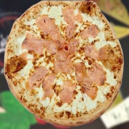 Sauce crème, mozzarella, saumon, épinard, ricotta, origan. €21.00